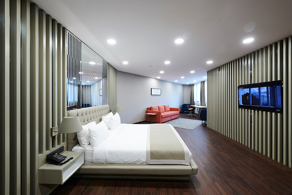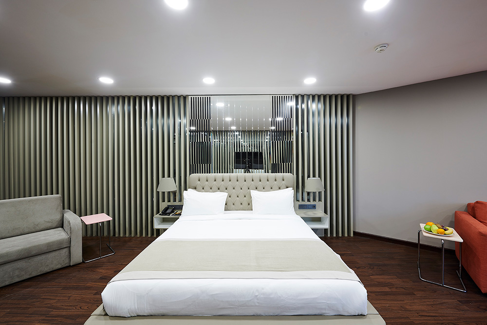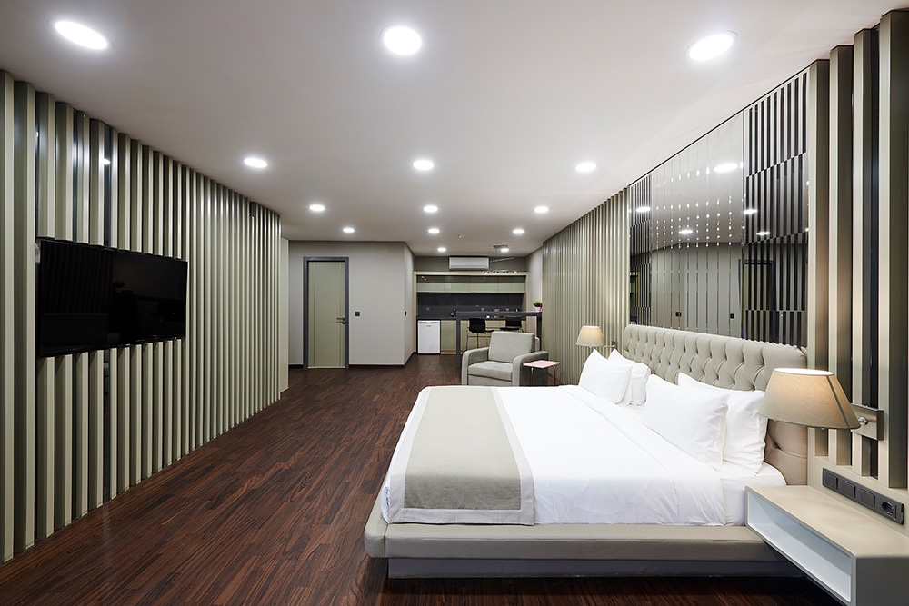 45 m² büyüklüğünde, konforlu ve modern tasarımıyla öne çıkan Kral dairelerimizde, merkezi ısıtma sistemi, duşlu banyo, 32″ TV, telefon, uydu sistemi, ücretli minibar ve ücretsiz Wi-Fi bulunmaktadır.