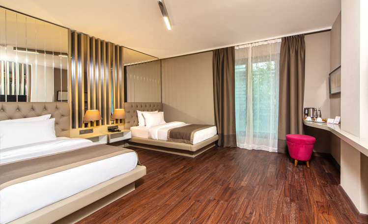 Şık ve modern tasarımıyla öne çıkan standart odalarımızda, merkezi ısıtma sistemi, duşlu banyo, 32″ TV, telefon, uydu sistemi, ücretli minibar ve ücretsiz Wi-Fi ile konforlu konaklama imkânı sunmaktayız.
